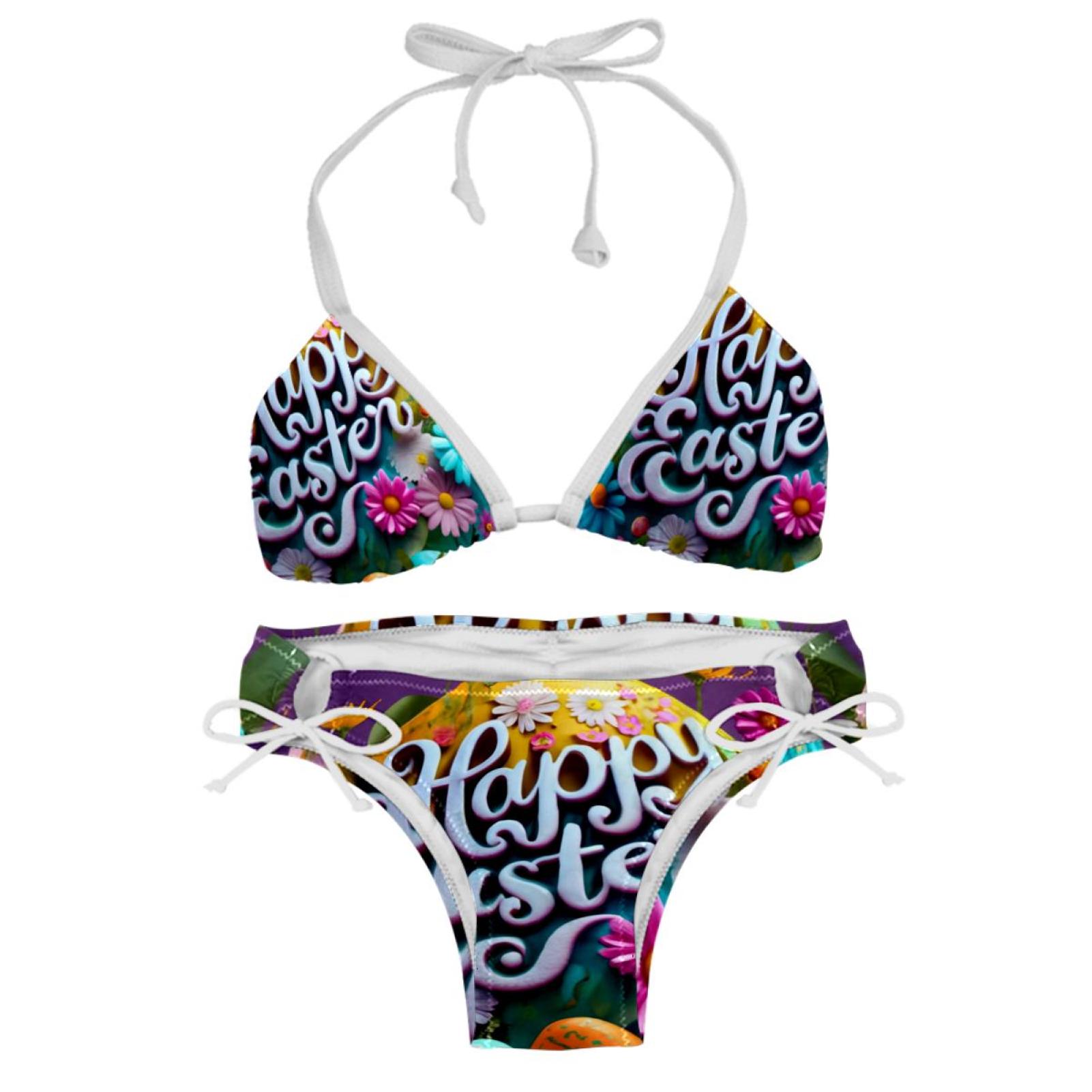Easter Font Chic One Piece Swimsuits Bikini Set Detachable Sponge is a popular picture for sexy and hot.