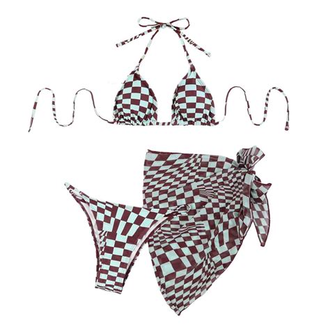 Buigttklop Women S Triangle Bikini String Swimsuit Print Tie Smocked