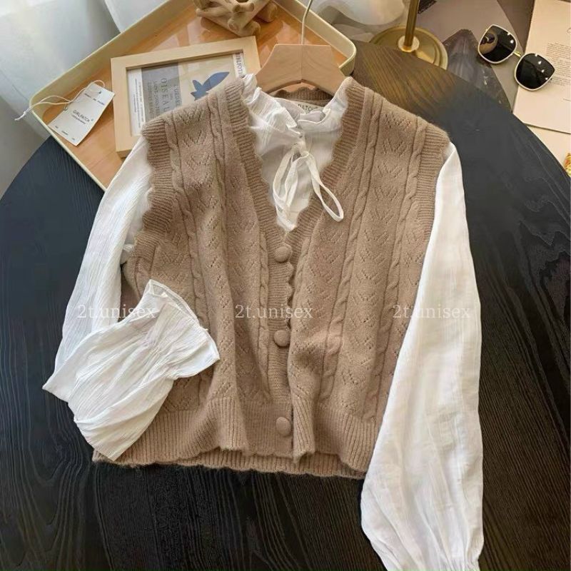 Áo gile len áo ghile nữ khuy tròn cổ chữ V tính Hàn Quốc chất đẹp dễ phối đồ siêu hot P 0