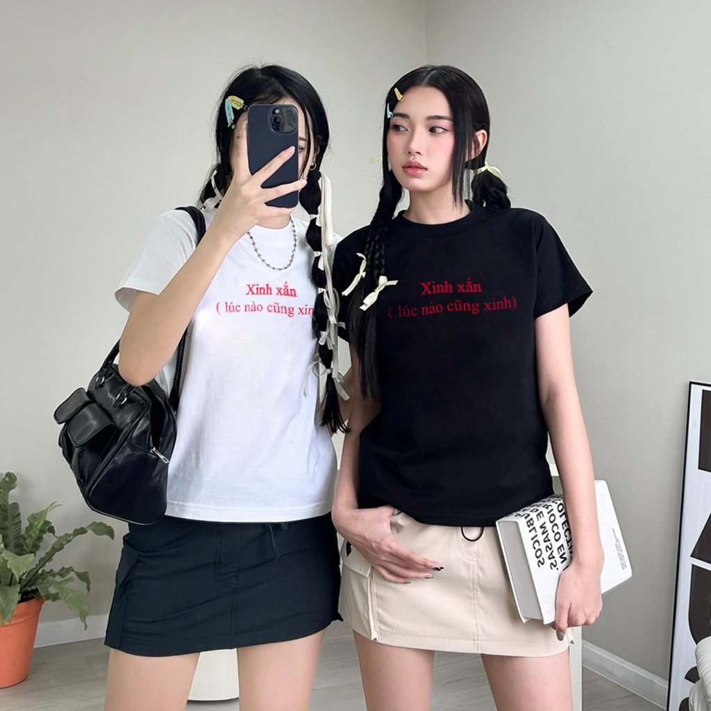 Tag : Áo thun baby tee xinh xắn thun dáng ngắn nữ hot trend mùa hè y2k croptop ngắn tay cổ tròn hồng