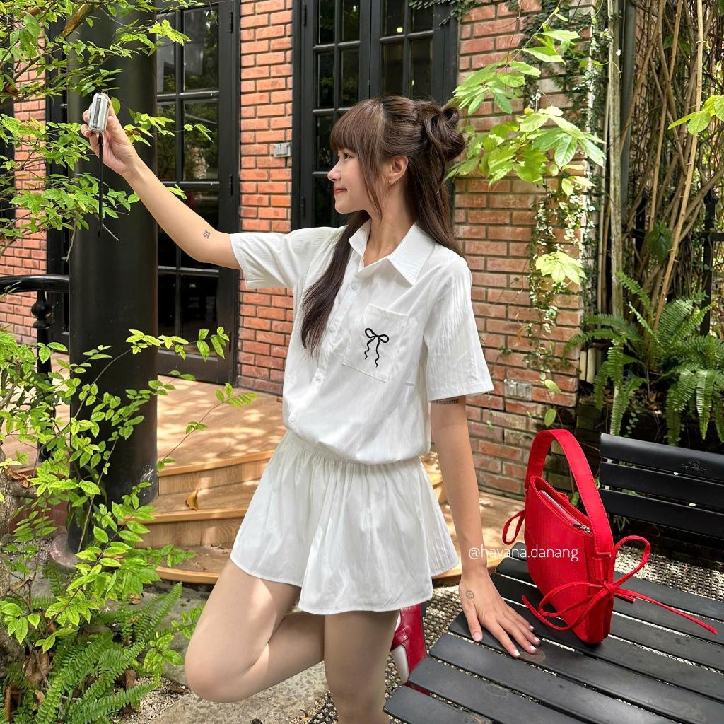 Tag : Đầm chất gió bo chun hông phối 1 túi in hoạ tiết nơ kèm quần short cạp chun hot trend HAVANA