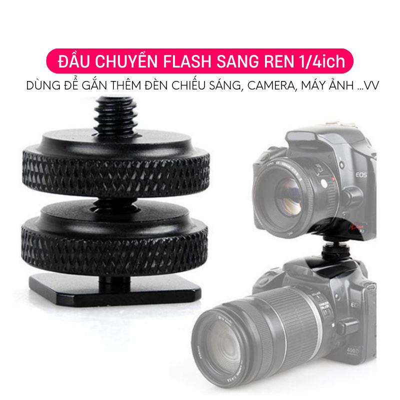 Tag : Đầu chuyển Flash hot shoe sang đầu ren 1 4 inch để gắn thêm đèn chiếu sáng đèn led camera máy