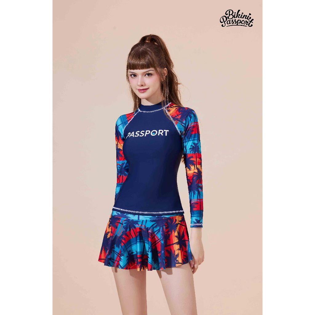 Đồ bơi bộ bơi nữ mảnh kín đáo tay dài chống nắng BIKINI PASSPORT Xanh Navy BS NV 93258