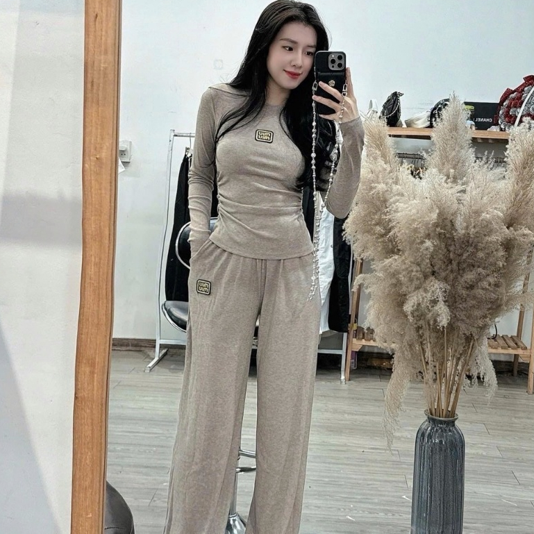 đồ bộ nữ đồ mặc nhà set đồ nữ quần dài Set miu dài tay gơn phố sang chảnh hot quảng châu cao cấp 120576
