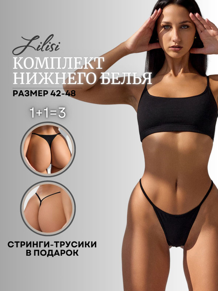 Комплект белья Женский Lilisi lingerie черный Без застежки стринги Хлопок размер is a popular picture for sexy and hot.