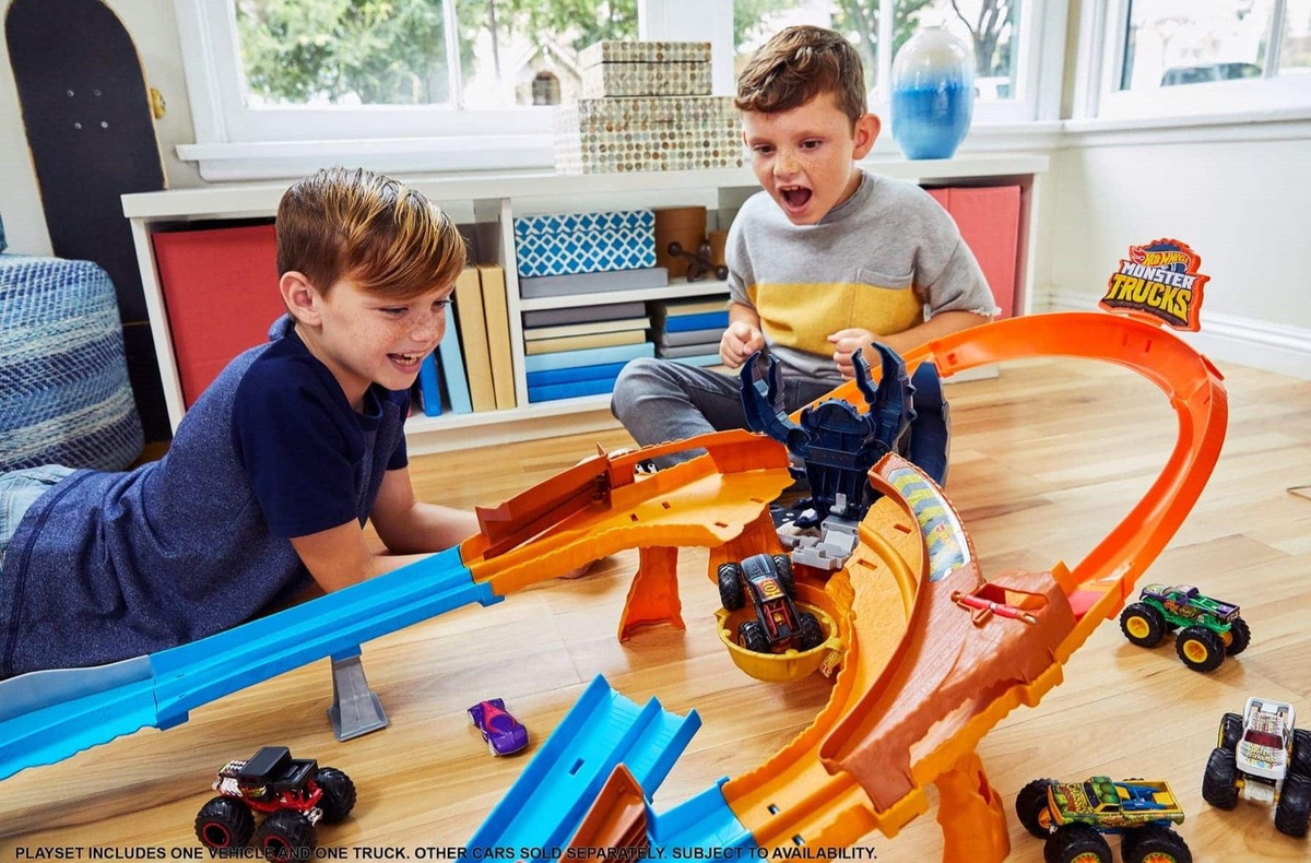 Tag : Набор Hot Wheels GTL33 Monster Trucks Scorpion Raceway Powered состоит из автомобиля и