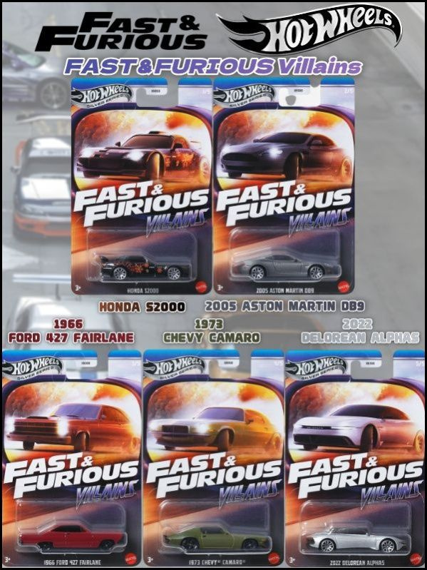 Набор Hot Wheels SILVER SERIES Fast Furious Villains коллекционных авто Honda S Aston