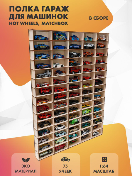 Полка гараж для машинок Hot Wheels ячеек В сборе вертикальная Парковка купить с