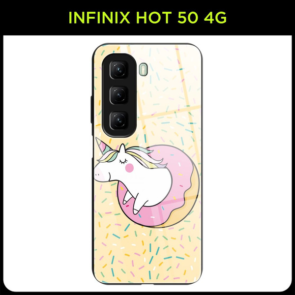 Стеклянный чехол на Infinix Hot 50 4G Инфиникс Хот 50 4G с принтом Единорог в пончике на is a popular picture for sexy and hot.