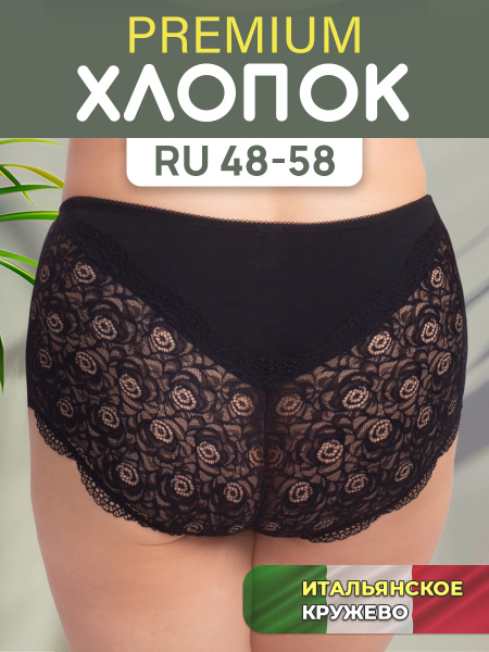 Tag : Трусы Женский I like lingerie макси слипы Хлопок черный размер 52 Высокая Кружево Россия
