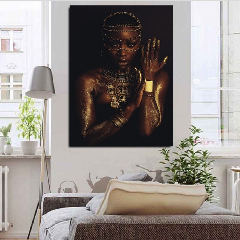 สดำและทอง Nude แอฟรกนผหญงเครองประดบผาใบวาดภาพโปสเตอรพมพงานภาพวาดบนผนงภาพสำหรบหอง is a popular picture for sexy and hot.