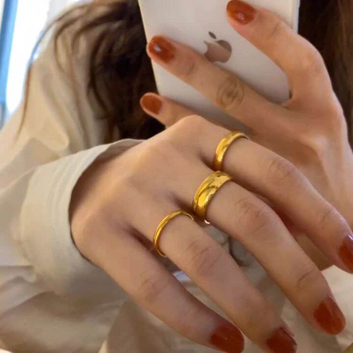 อตสาหกรรมหนกไมซดจางงาย INS แหวนทองหญง แฟชนเรยบงายกวางบางแมทชลคงายสำหรบครก hot is a popular picture for sexy and hot.