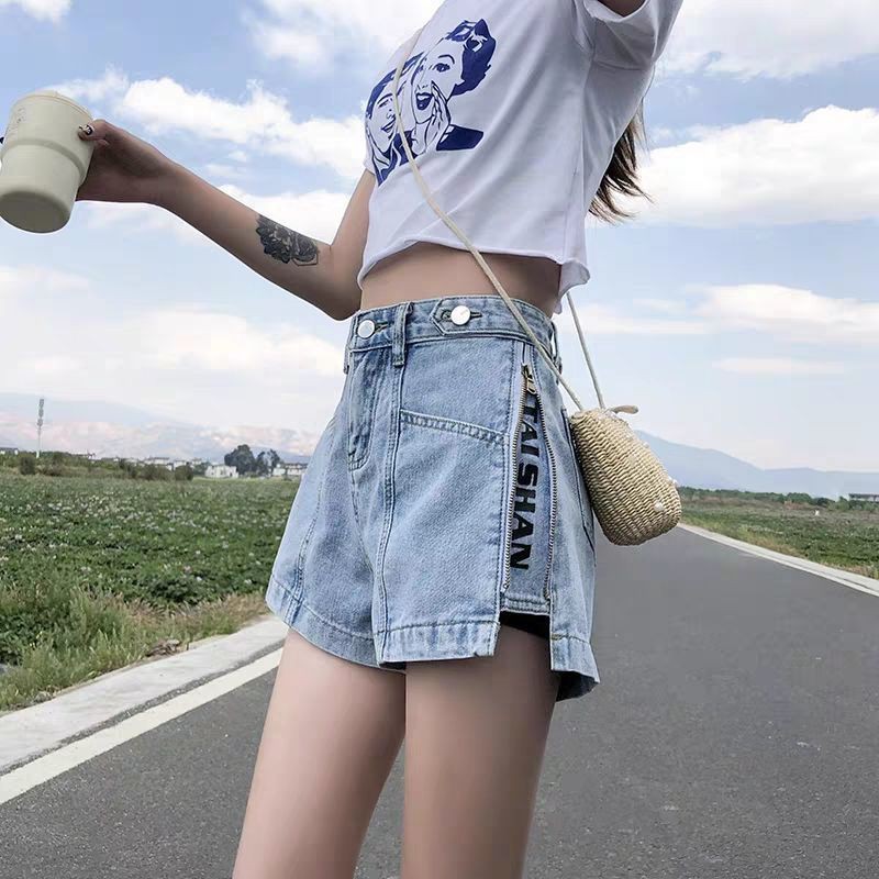 เอวสงทรงหลวมกางเกงขาสนผายนสหญง 2021 ใหม ฤดรอน hyuna สไตล a line สทธสแดง Hot pants