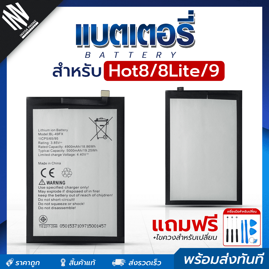 Tag : แบตเตอร Infinix HOT 8 HOT 9 HOT 8 Lite Spark 5 Air Smart 5 ฟรชดอปกรณไขควง Bettery