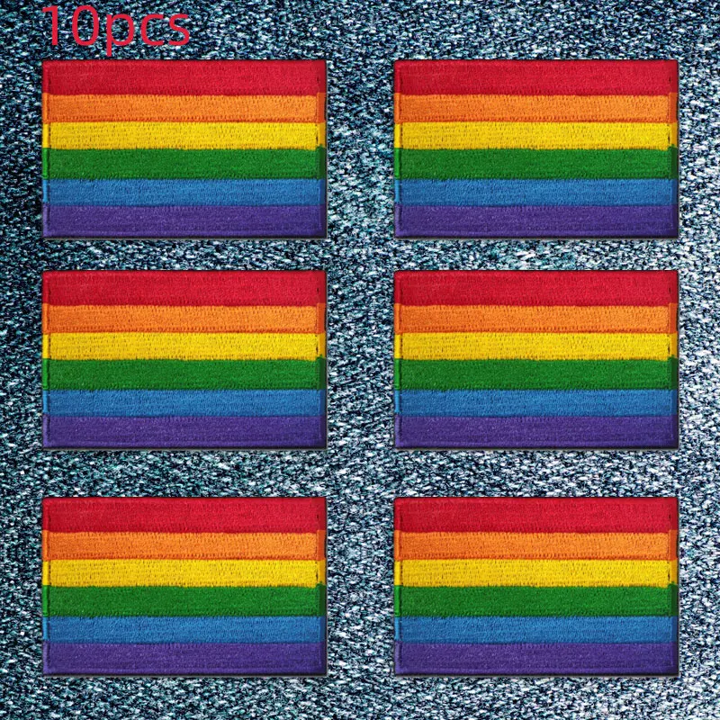 10 pcs Lot LGBT Orgulho Gay Bandeira Do Arco Íris Patches Bordados Roupas Patches Termoadesivos