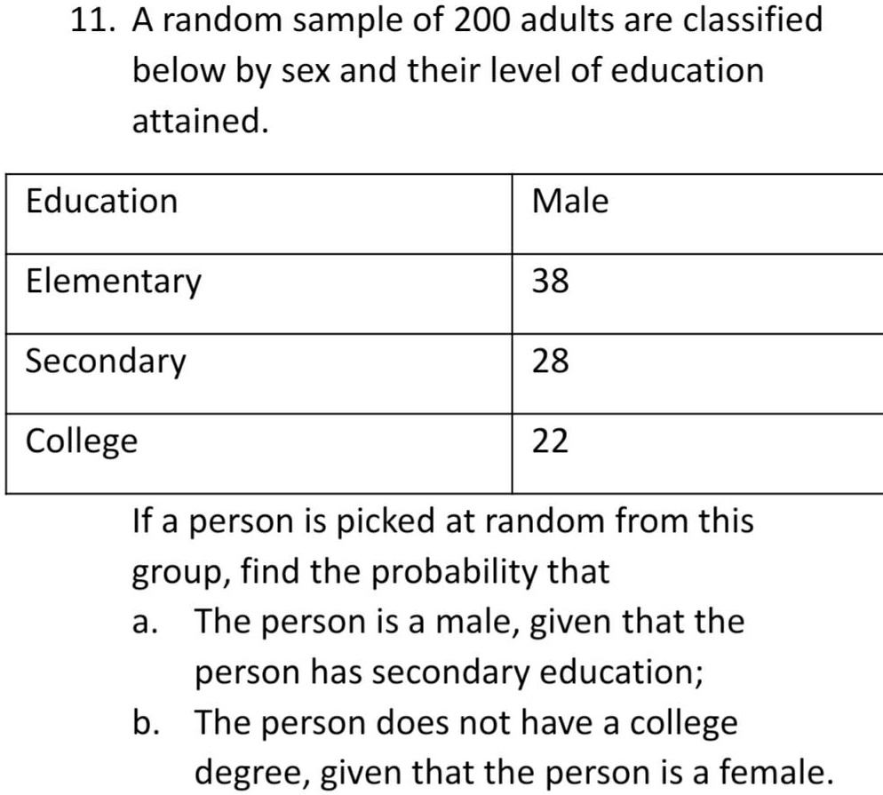 Tag : 11 A Random Sample Of 200 Adults Are Classified Below By Sex And Their Level Of Education