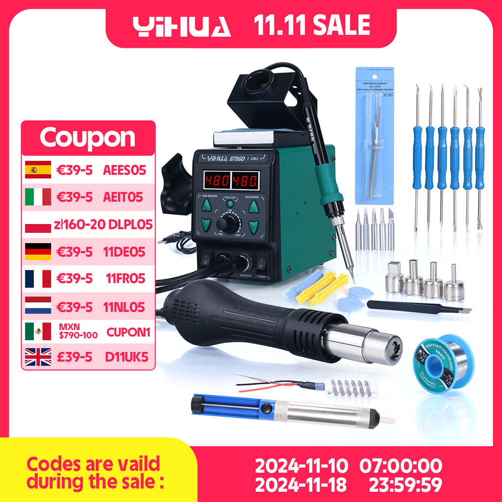 Tag : 12 YIHUA 2 8786D Iron Hot Air Soldering DIY Digital Rework Telephone Repair BGA SMD Solder Tool