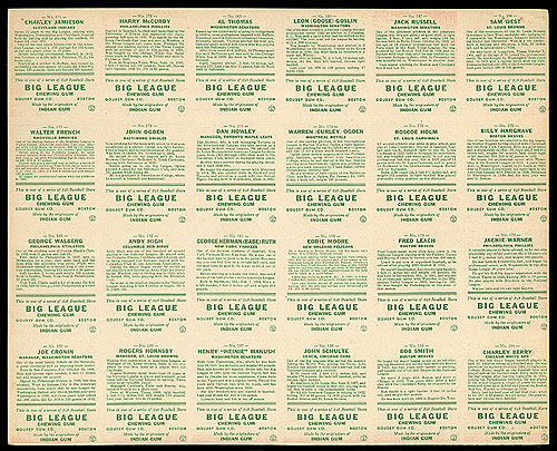 Tag : 1933 R319 Goudey Uncut Sheet With Five Hall Of Famers Including 181 Babe Ruth REA Archive