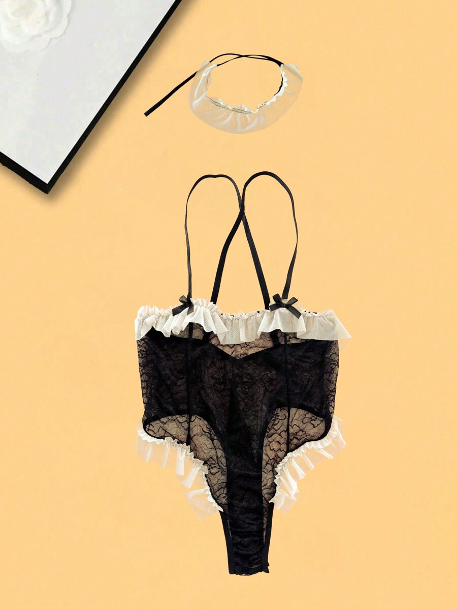 Tag : 1pc Sexy Lingerie Lace Cut Out Backless Teddy Jumpsuit SHEIN USA