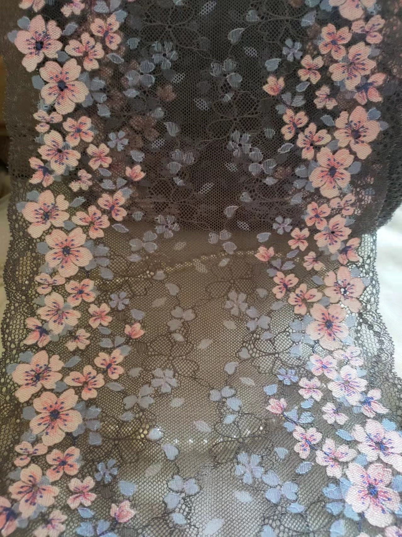 Tag : 2 Yards Stretch Lace Trim Gorgeous Pink Floral Deep Grey Lace For Lingerie Headbands
