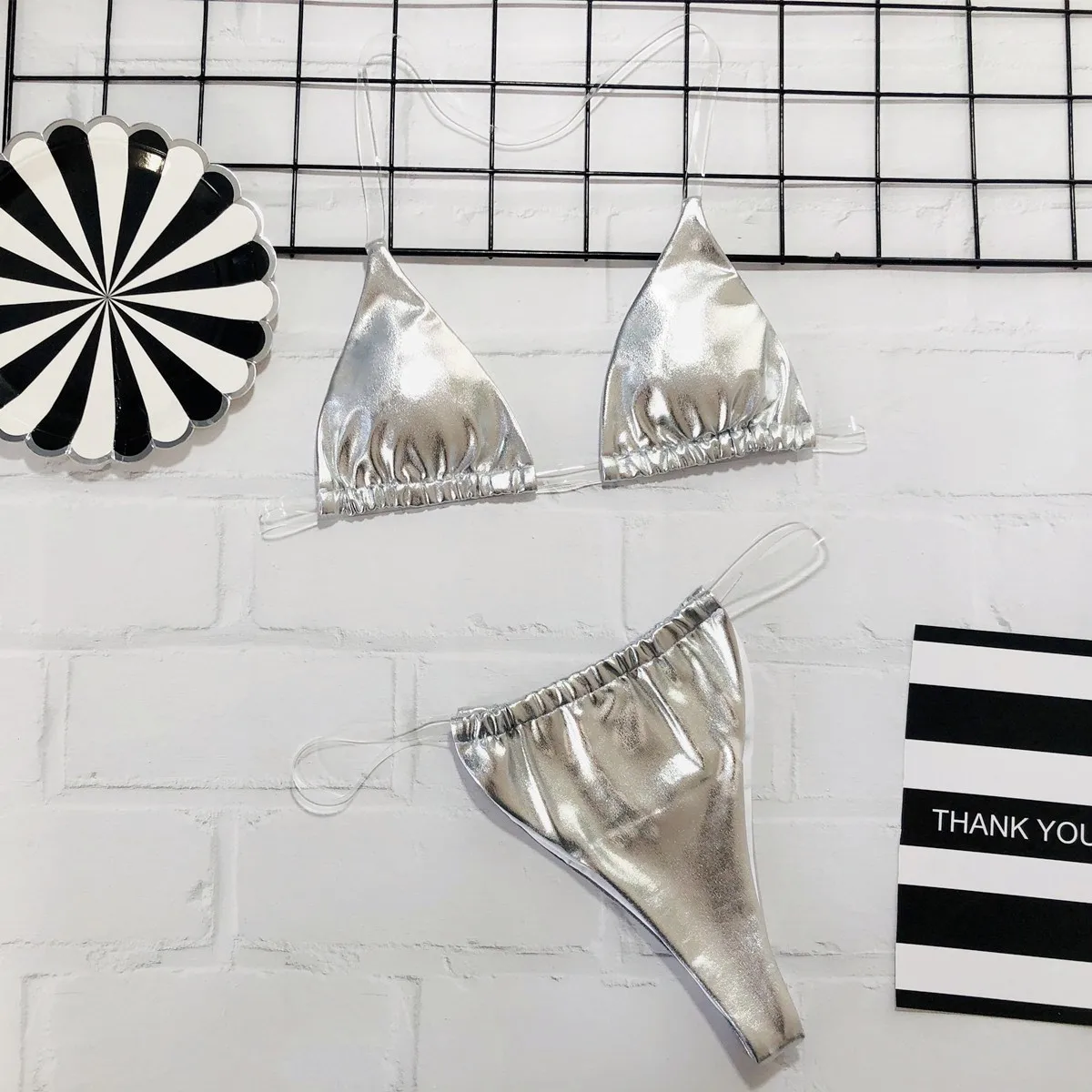 Tag : 2019 Transparent Invisible Bandage Two Piece Bikini Solid Color Swimwear Brazilian Sexy Women