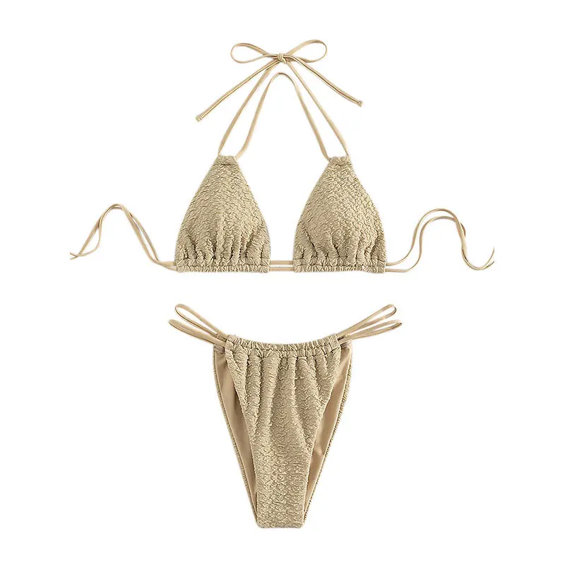 Tag : 2023 New Summer Swimwear Women S Neck Strap Bikini Solid Color Beachwear Split Sexy Swimsuit Two