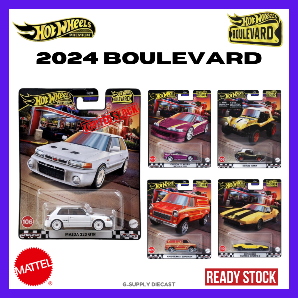 2024 HOT WHEELS BOULEVARD Premium Mazda 323 GTR Acura Integra Meyers Manx Ford Transit De Tomaso is a popular picture for sexy and hot.