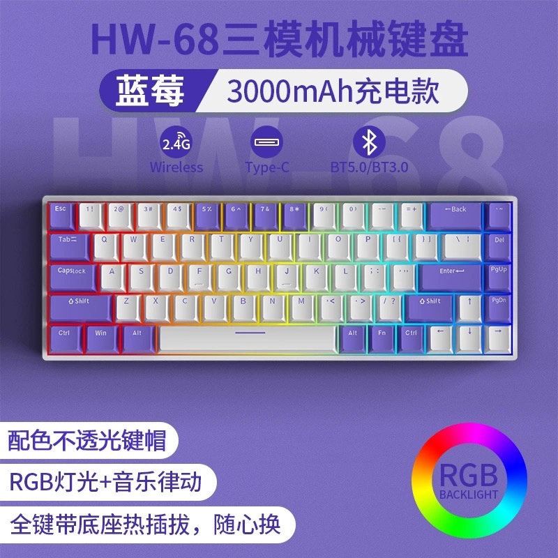 Tag : 2024 New Readson Hw61 RGB Hot Swap Wired 2 4g Wireless Bluetooth 3 Mode 61 Keys Game Mechanical