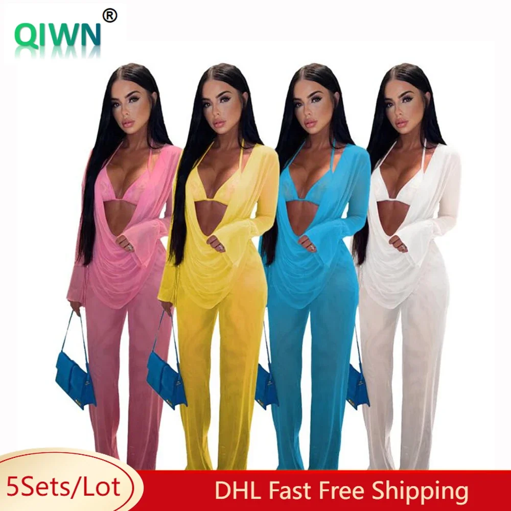 Tag : 5Sets Bulk Wholesale Women Bikini Sets Sexy Mesh See Through Three Piece Sets Bra Long Sleeves