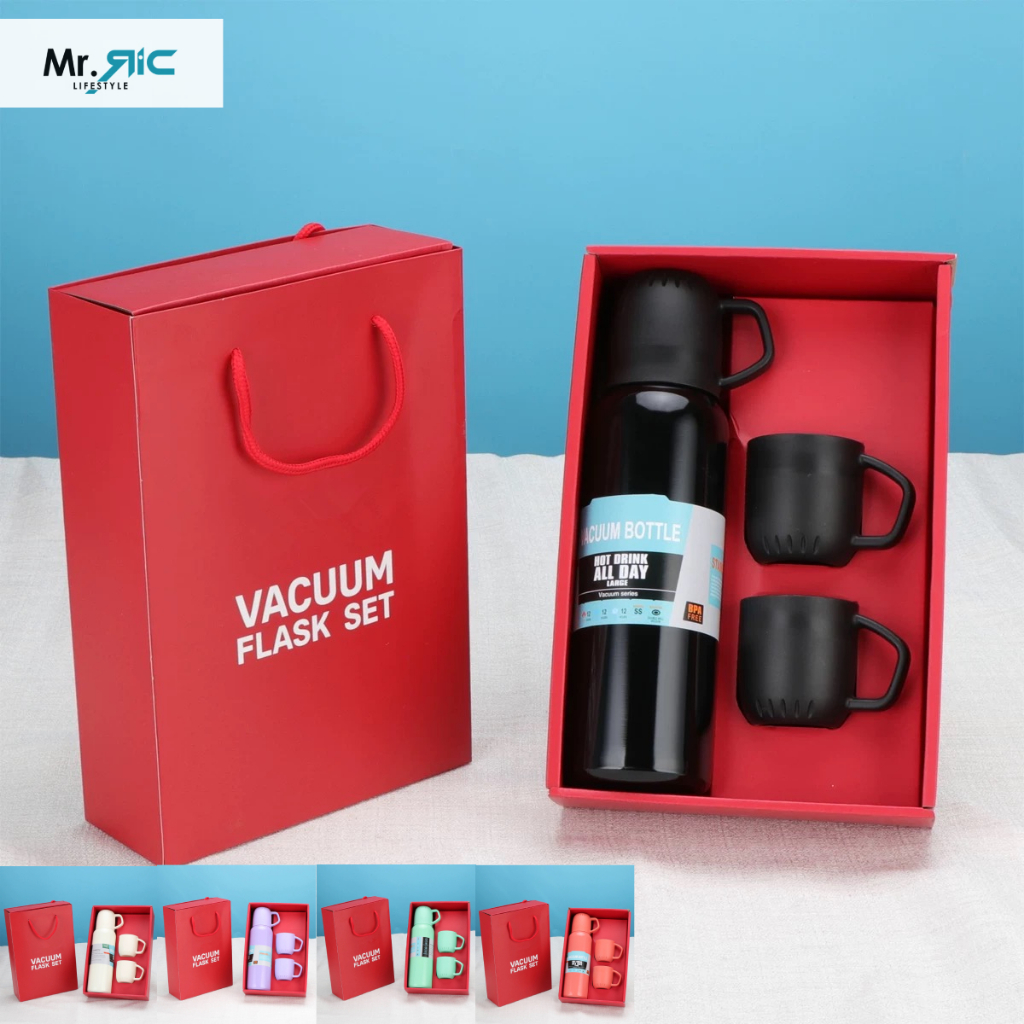 Tag : 648ml Gift Set Vacuum Insulated Thermos With 3 Cup Lids Hot And Cold Travel Flask Double Wall