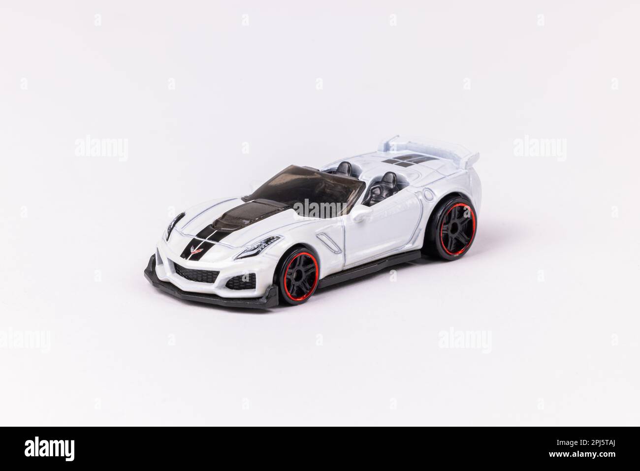 Tag : A Closeup Shot Of A White Hot Wheels Chevrolet Corvette C7 Z06 Convertible On A White Background