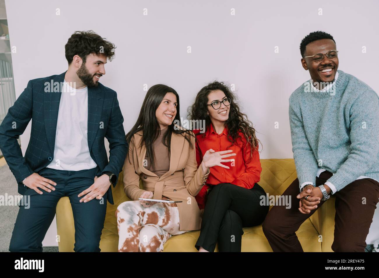 Tag : A Lovely Brunette Girl Talking To Her Black Male Colleague While Her Colleagues Are Listening To
