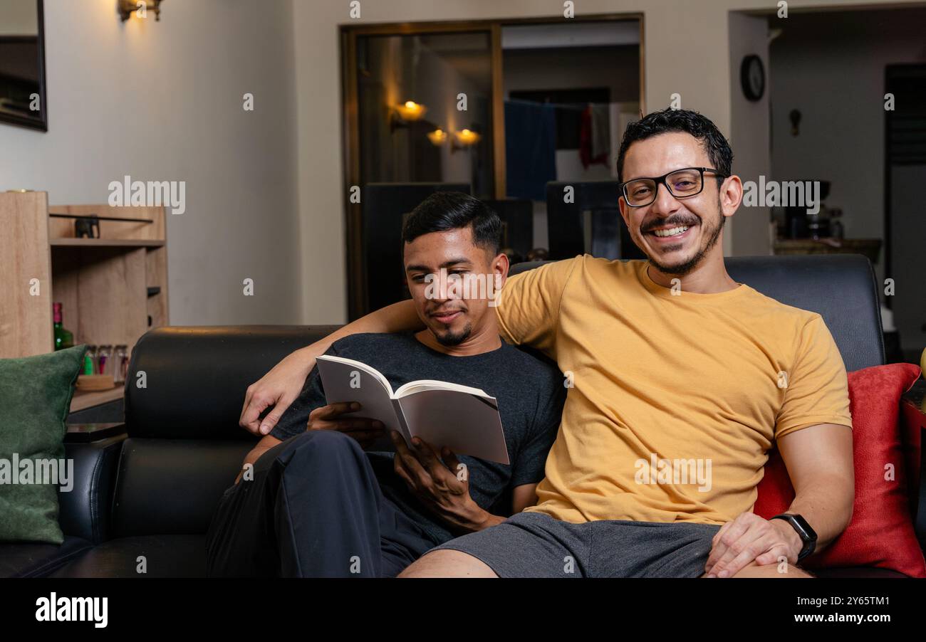 Tag : A Loving Gay Couple Shares A Comfortable Moment On Their Couch With One Man Reading A Book And