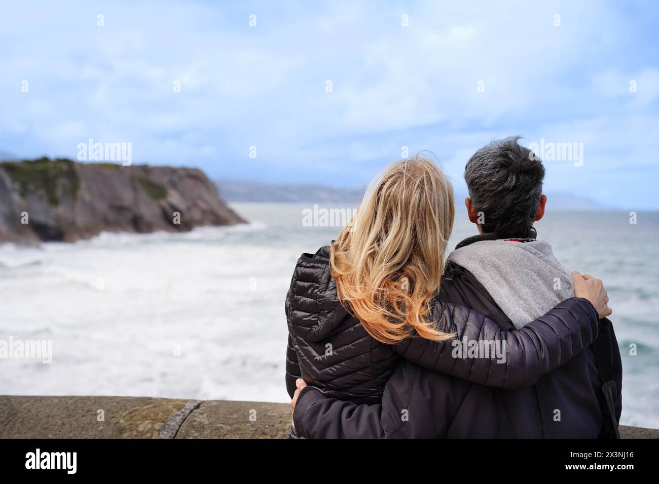Tag : A Rear View Of A Gay Women Couple Hugging On A Pier Looking At The Horizon The Scene Is