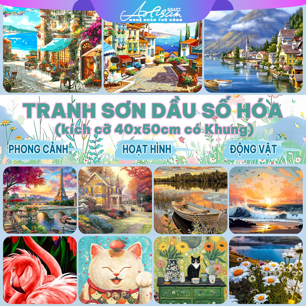 ARTISAN Tranh tô màu theo số sơn dầu Nhiều mẫu hot trend tranh sơn dầu phong cảnh 40x50cm có
