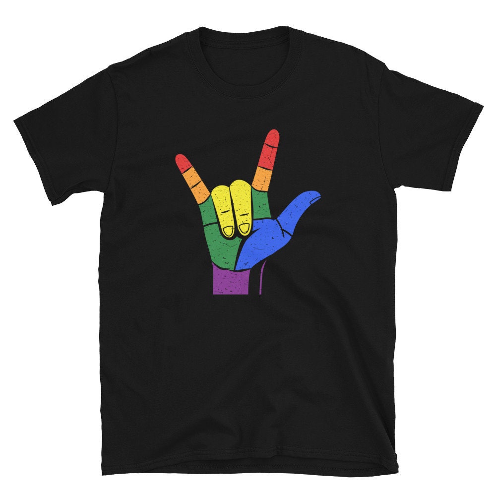 ASL Gay Pride T Shirt Rainbow LGBT Pride Shirt American Sign Language Love ASL For Love Gift