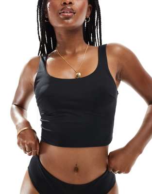 Tag : ASOS DESIGN Maya Mix And Match Longline Crop Bikini Top In Black ASOS