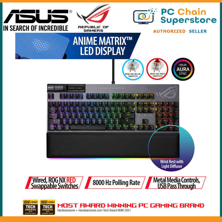 Tag : ASUS ROG Strix Flare II Animate 100 RGB Gaming Keyboard Hot Swappable ROG NX Red Blue