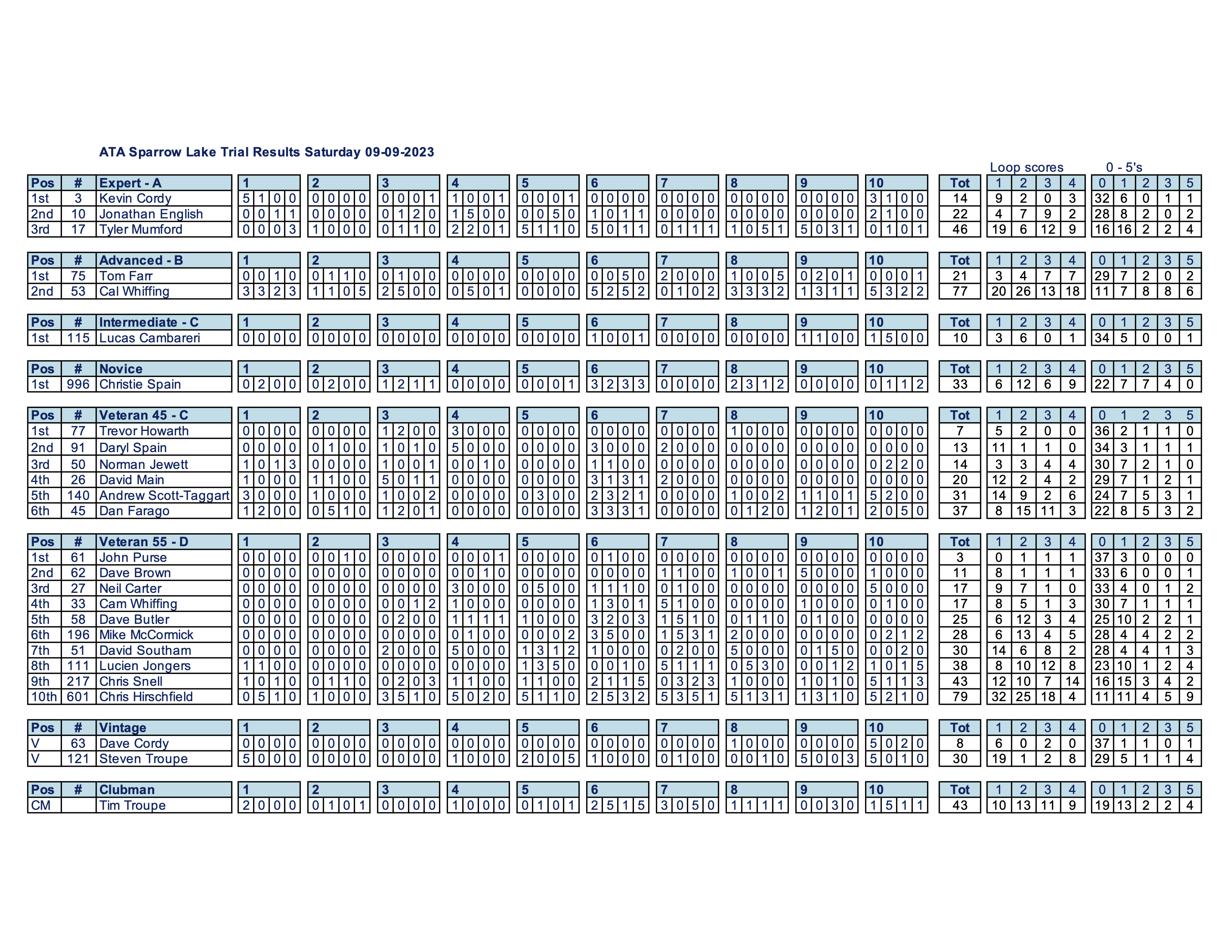 Tag : ATA Sparrow Lake 2 Day Trial Full Results September 9th 10th 2023 Amateur Trials Association