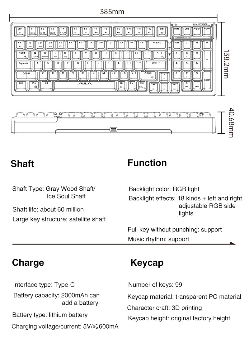 AULA F98 Mechanical Keyboard 2 4G BT Type C Mode 99 Keys Hot Swappable Transparent Keyboard pictures has 500 x 400 · 50 kB · jpeg.