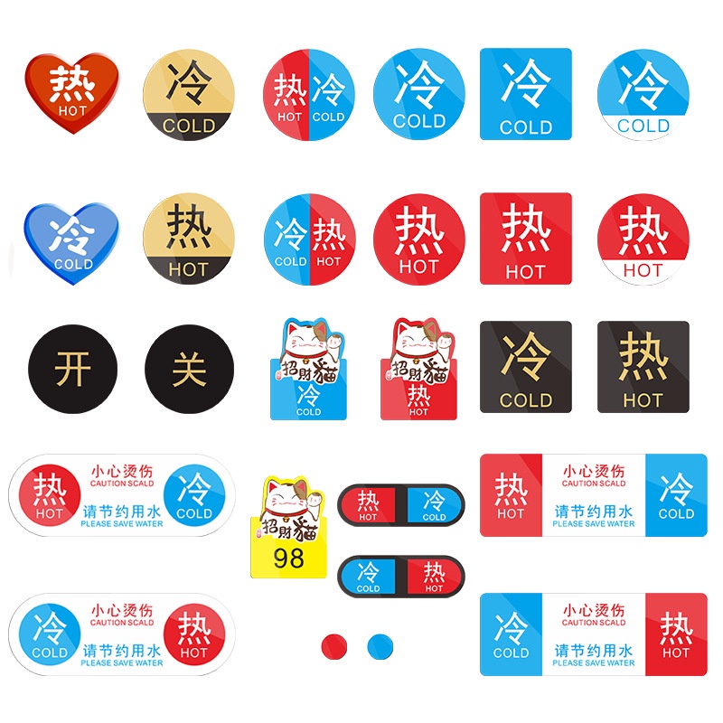 Tag : Acrylic Hot And Cold Water Logo Sticker Waterproof Label Sticker Toilet Hotel Bathroom Logo
