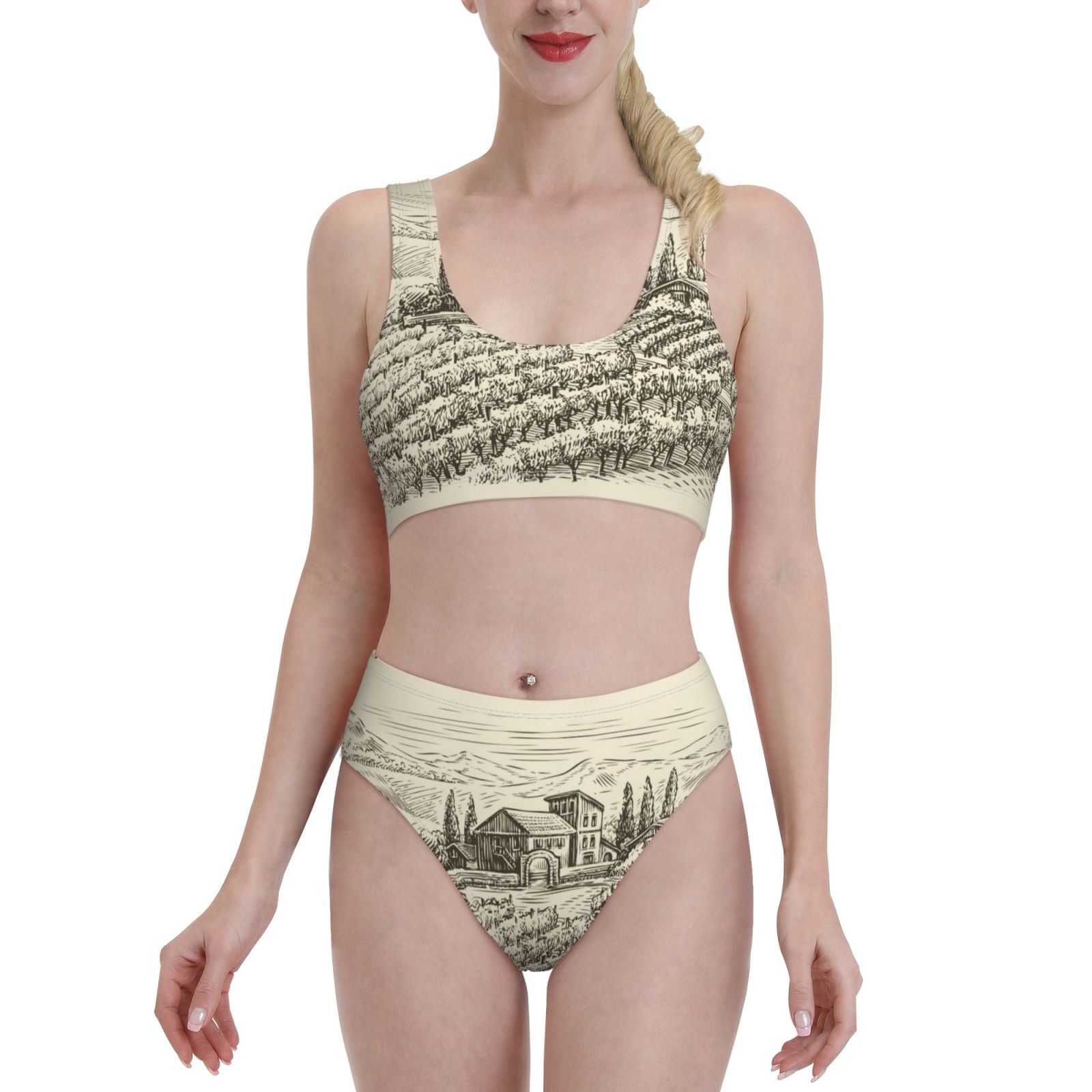 Tag : Adobk Vineyard Landscape Print Women High Waisted Bikini Set Sports Swimsuit Bathing Suit Large