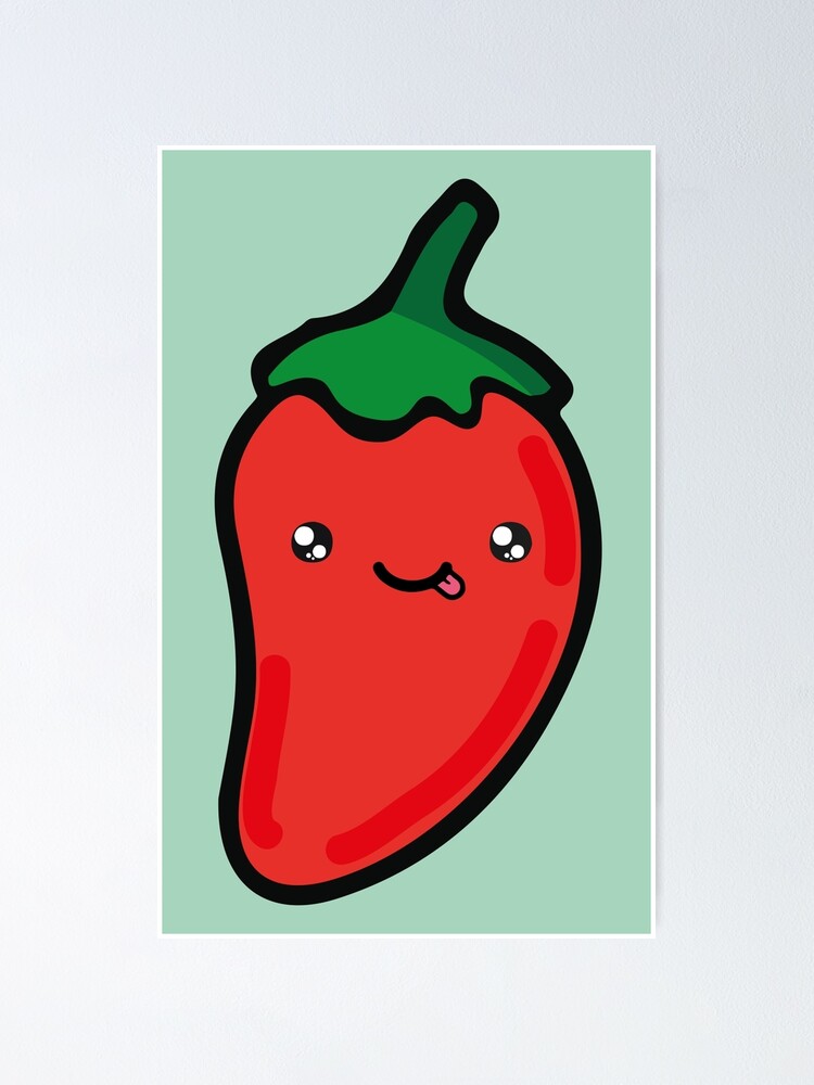 Adorable Red Chilli Pepper Kawaii Mexican Spicy Food Cute Hot Sauce Poster By T Mex Redbubble is a popular picture for sexy and hot.