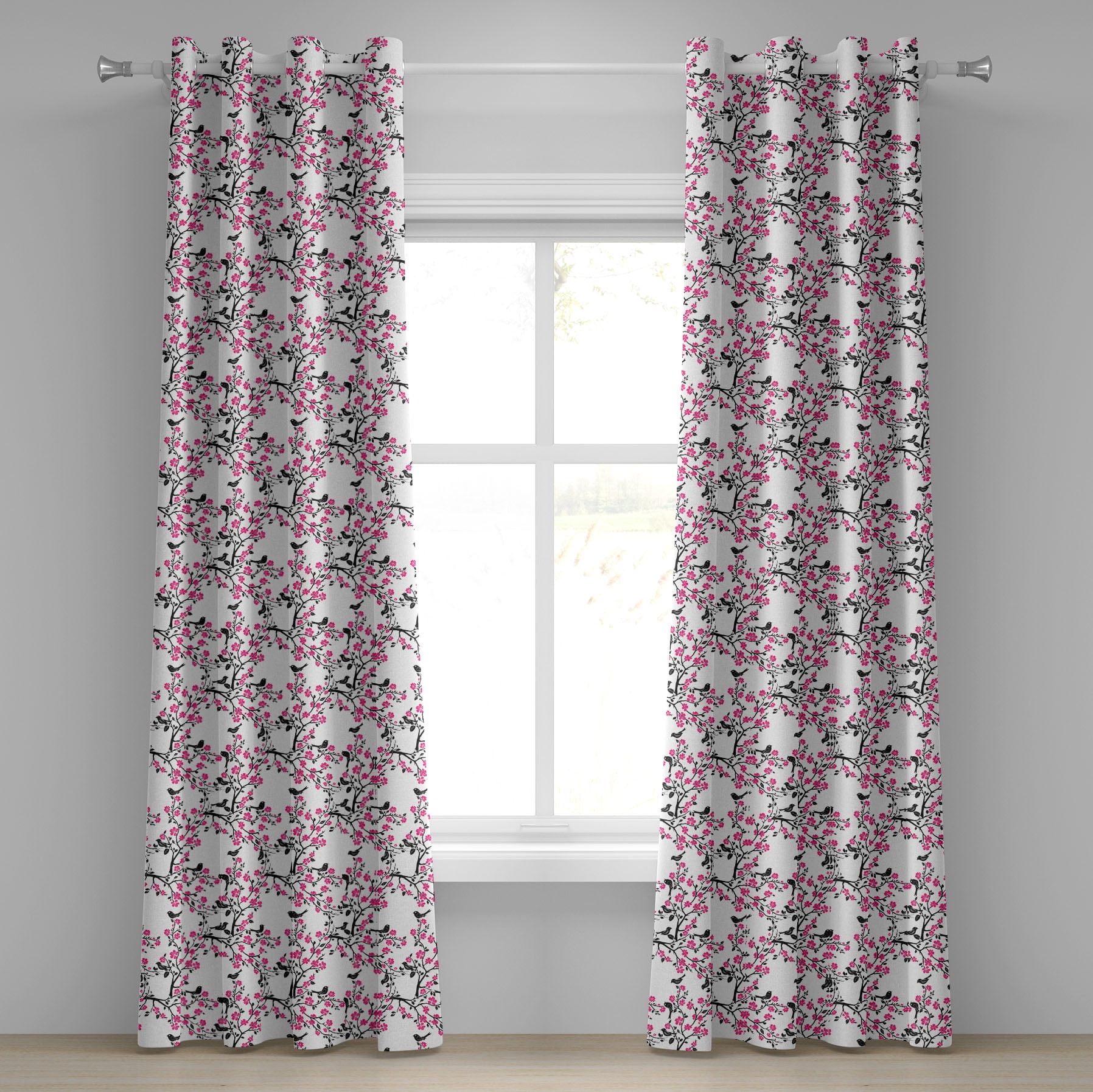 Tag : Ambesonne Cherry Blossom Grommet Curtain Sakura Tree Bird X Black Hot Pink White