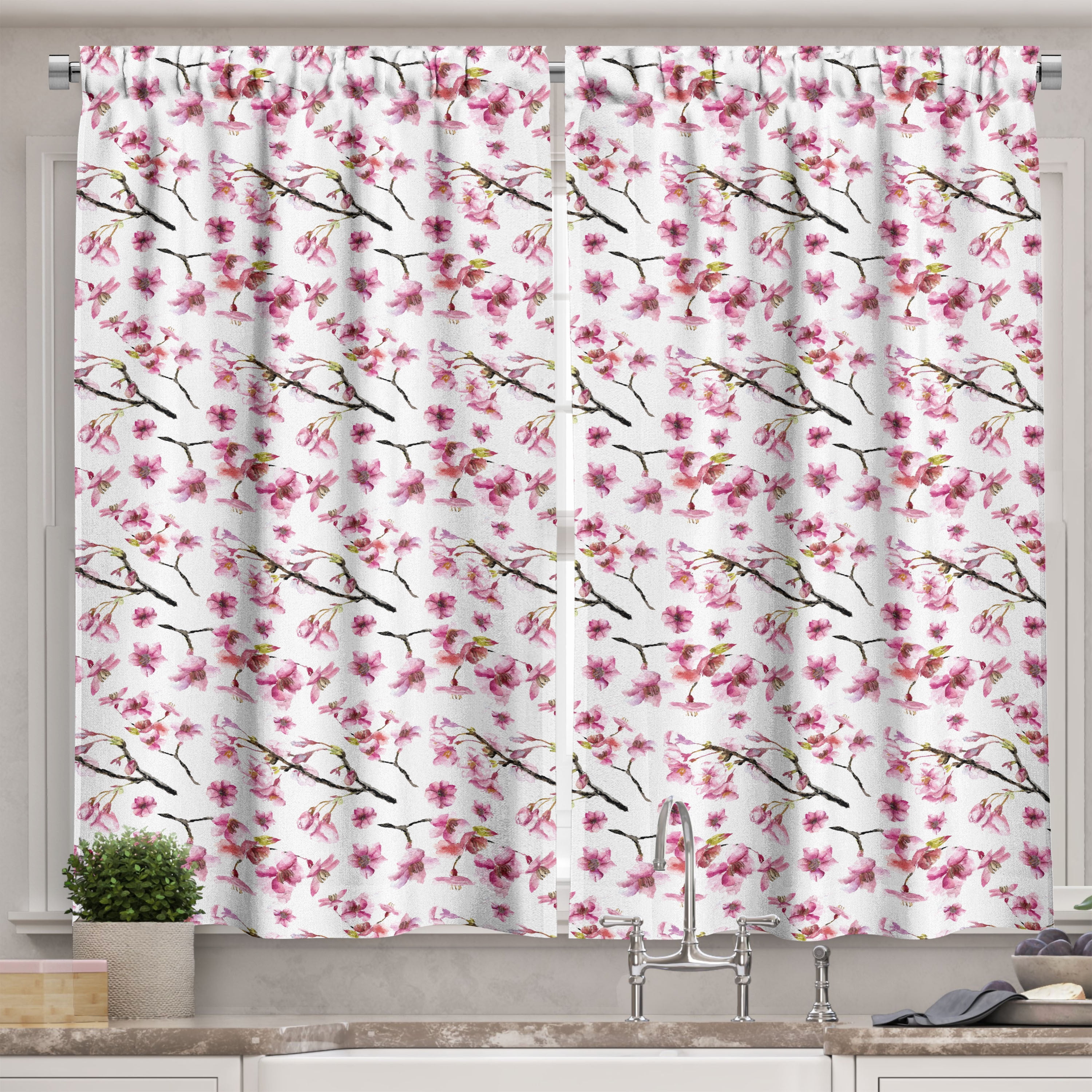 Tag : Ambesonne Cherry Blossom Kitchen Curtains Sakura Branch 55 X39 Hot Pink Green Brown