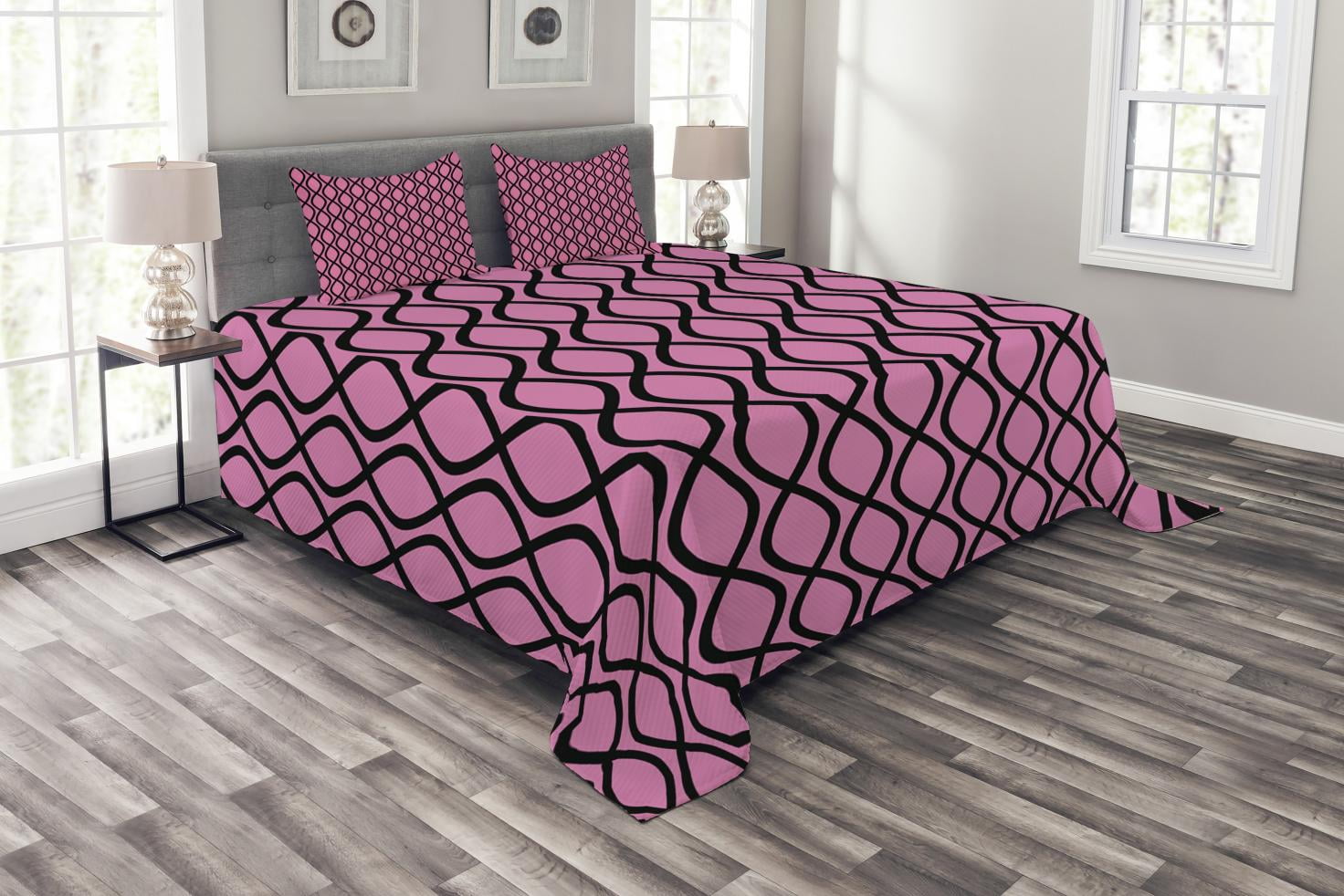 Tag : Ambesonne Hot Pink Quilted Bedspread Set Pcs Wavy Lines Feminine King Size Pink Black