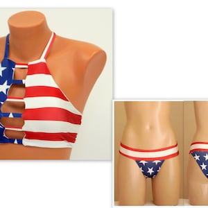 American Flag High Neck Halter Bikini Top Full Coverage Bottoms Plus Size Swimsuit Swimwear is a popular picture for sexy and hot.