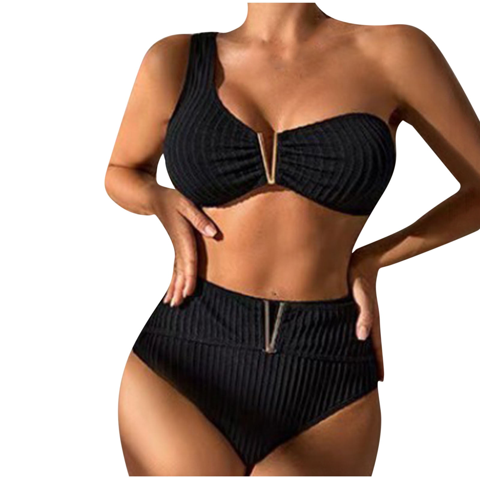 Arnsht Women S Ribbed Bikini Sets Summer Solid Color One Shoulder Top is a popular picture for sexy and hot.