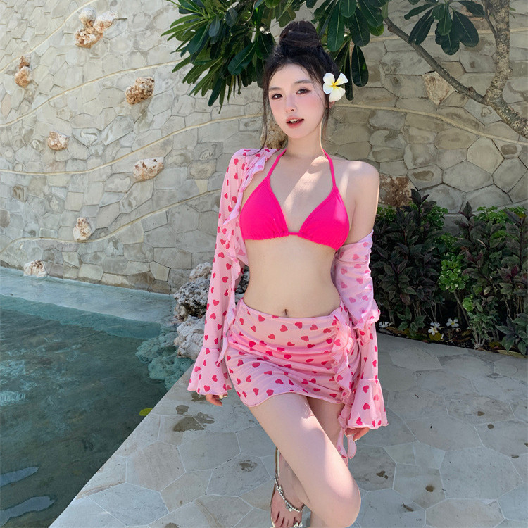 Bộ đồ bơi bốn mảnh bộ bikini gợi cảm màu hồng dành cho nữ đồ bơi xẻ tà chống nắng dài tay is a popular picture for sexy and hot.