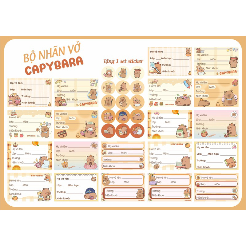 Bộ 20 nhãn vở chủ đề CAPYBARA LABUBU MOLLY CRY BABY SKULLPANDA cực xinh vô cùng hot hit 0